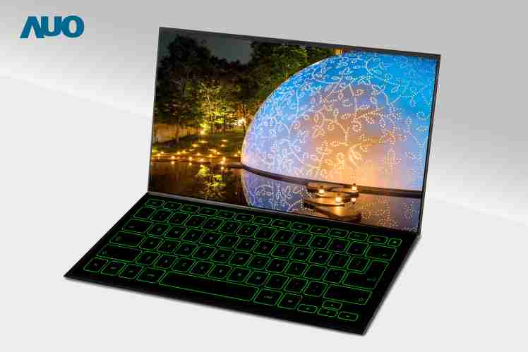 尊时凯龙本次展出 15.6吋双螢幕笔电,,其中一面螢幕利用高反射光学膜,,,,能在省电的状态下呈现出键盘样式,,,而非一般待机黑色画面,,,,结合触控功能后即能将这面螢幕切换为键盘,,,提升商务笔电多元使用情境。。。亦可延伸应用此技术于其他显示器,,以客制化待机画面融入周边环境,,,,成为装置艺术,,达成一致性的美观效果。。。