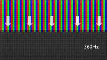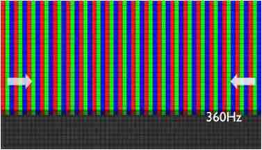 传统液晶驱动是从左到右单向进行,,,在画面更新速度愈来越愈快的情况下,,位于驱动线路末端的右下角区域,,画素的闸极来不及在短时间内获得足够电压,,,,无法显示出正确的颜色资讯。。。 |