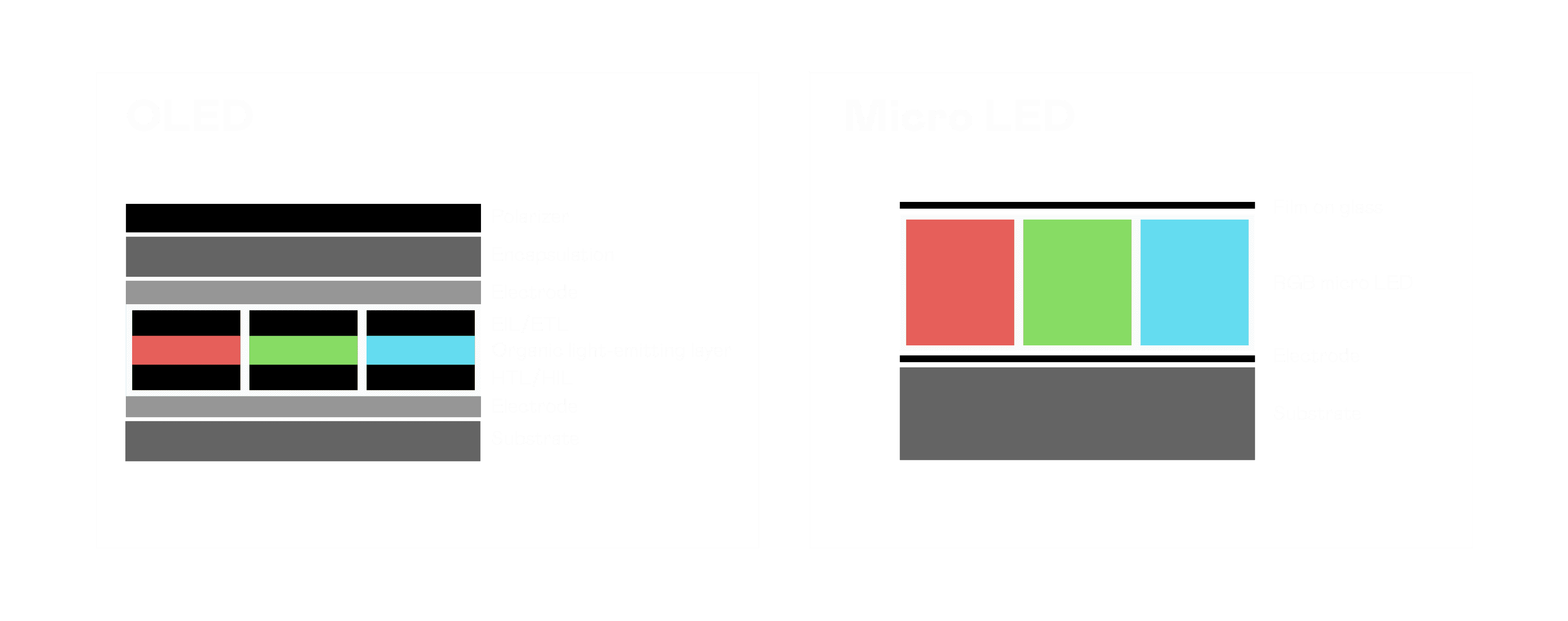 以 LED 做为显示画素,,,可让 LED 的发光效率发挥到极致,,,,从而让显示器具备优异的亮度表现,,,,不论是在户外或室内,,,均具备出众的显示效果。。。。同时,,与使用有机材料的 OLED 相比,,,LED 具备更稳定、、、、寿命更长的特性,,,不仅不会有画面烙印问题,,,,而且更不容易出现故障、、、坏点。。。。
